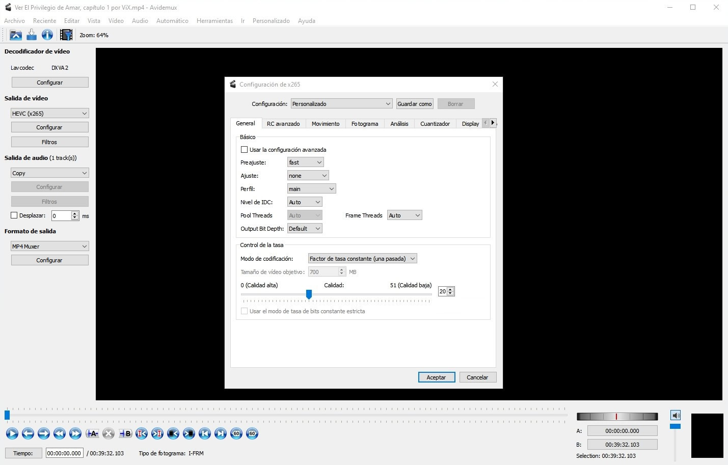 But there is another problem, because the x265 is NOT so common, since I found out that it is not open source, it may not be available on smart TVs or tablets. Probably have to make it in x264