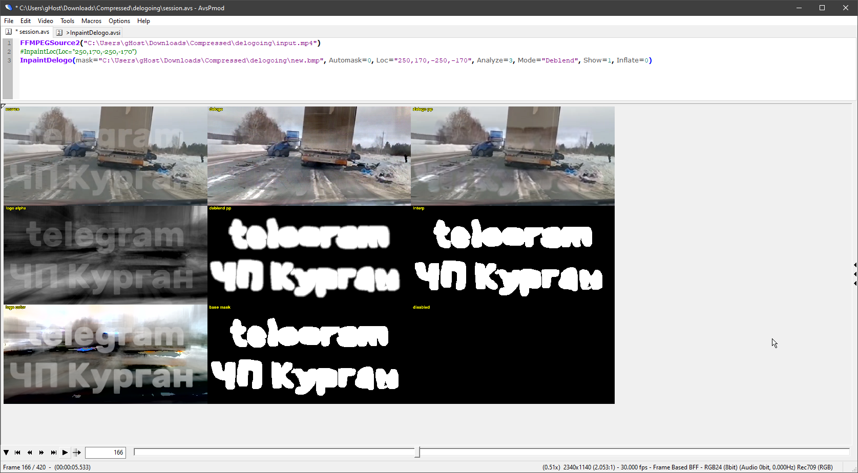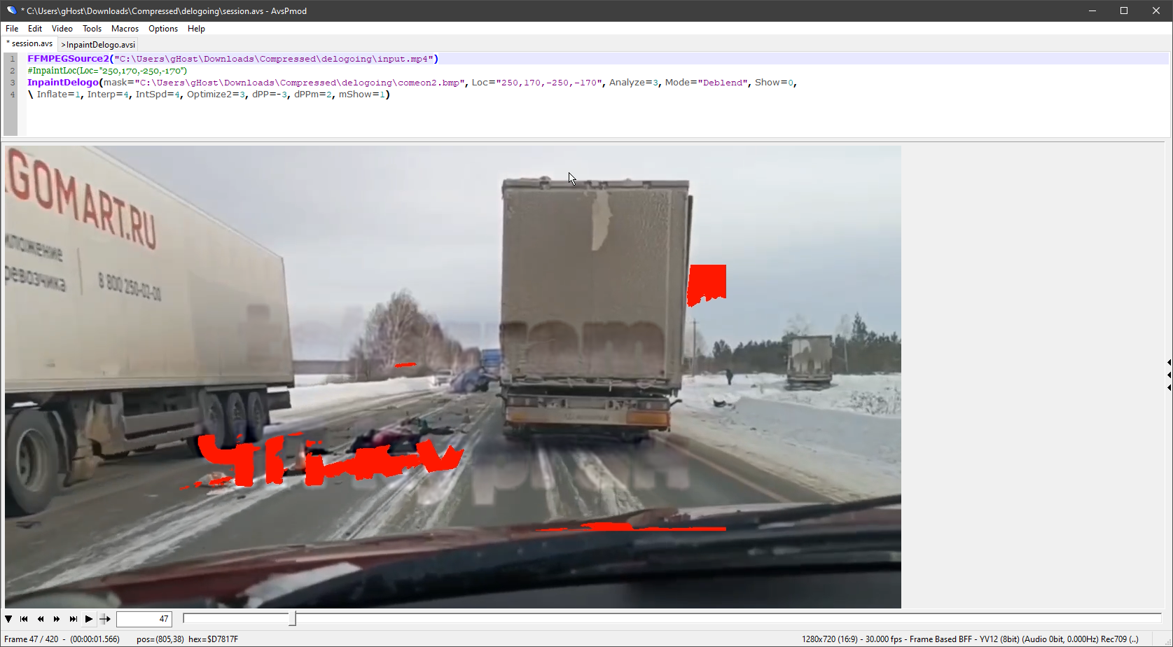 InpaintDelogo(mask=n, Loc="250,210,-280,-190", Analyze=3, Mode="Deblend", Interp=0, dPP=-5,