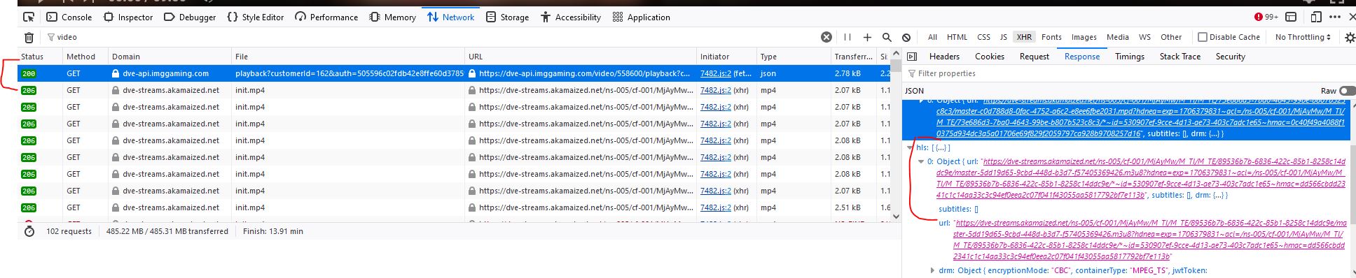 Issue getting keys from authorized video site