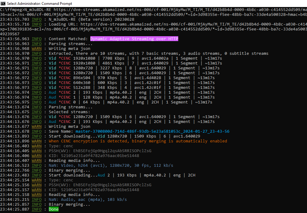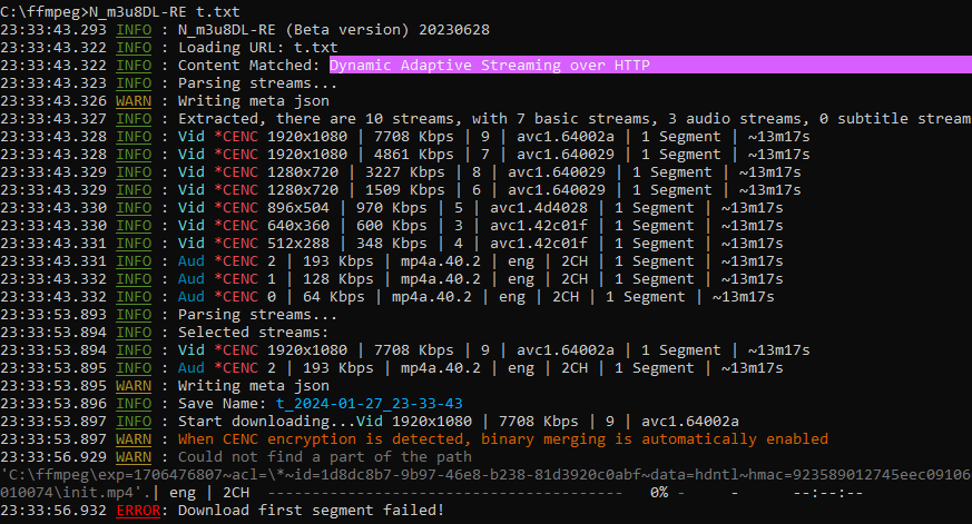 I tried N_m3u8dl and I get this: