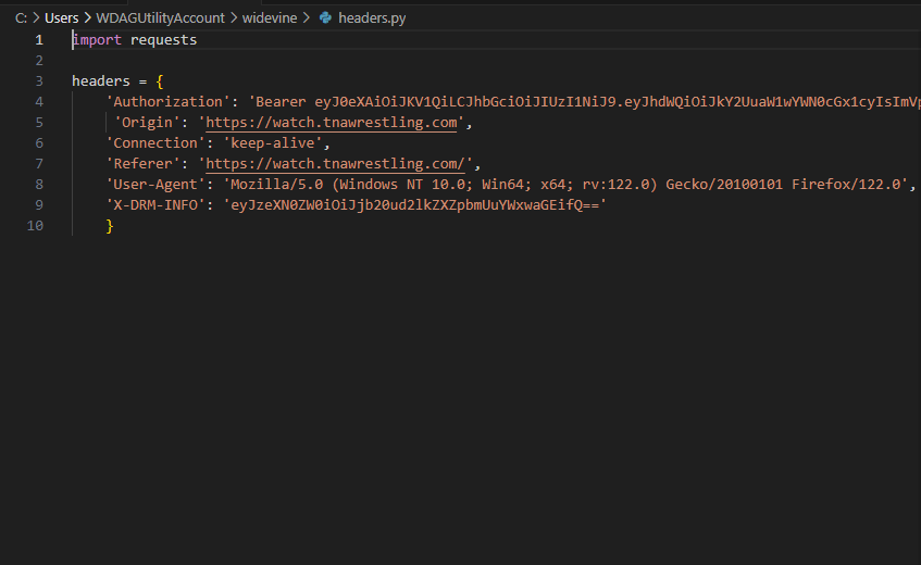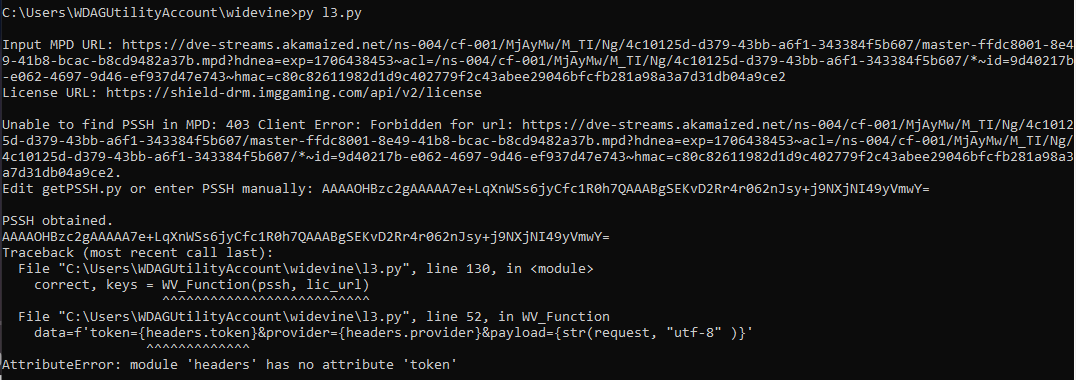 i already told you about mpd, lic url and the header, header only need is "Authorization': 'Bearer ey..." but you add all full header in header.py.