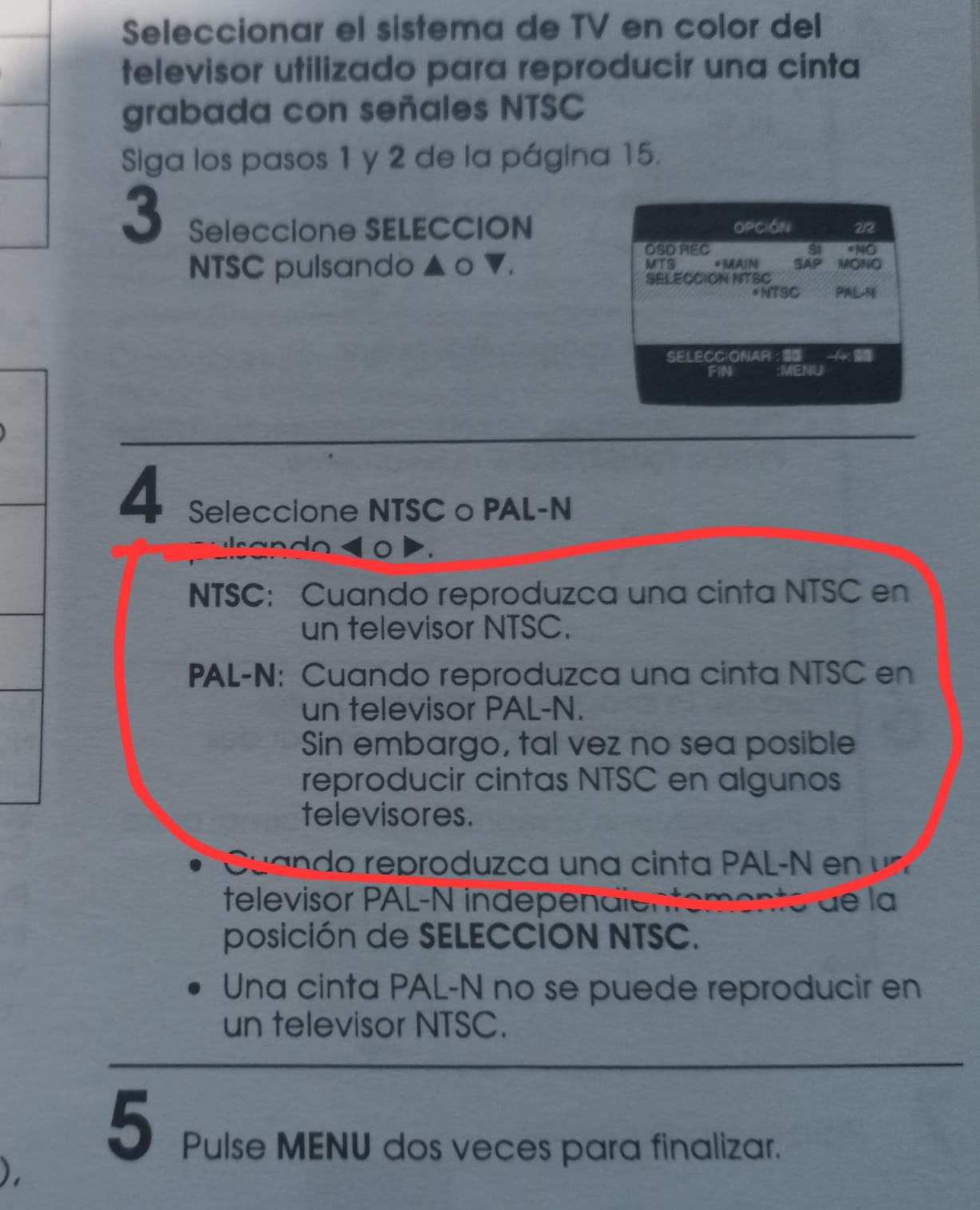 PAL-N: When playing an NTSC tape on a PAL-N TV.