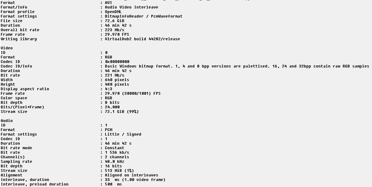 That will yield you a file of around Jagabo's size, 24-32GB.