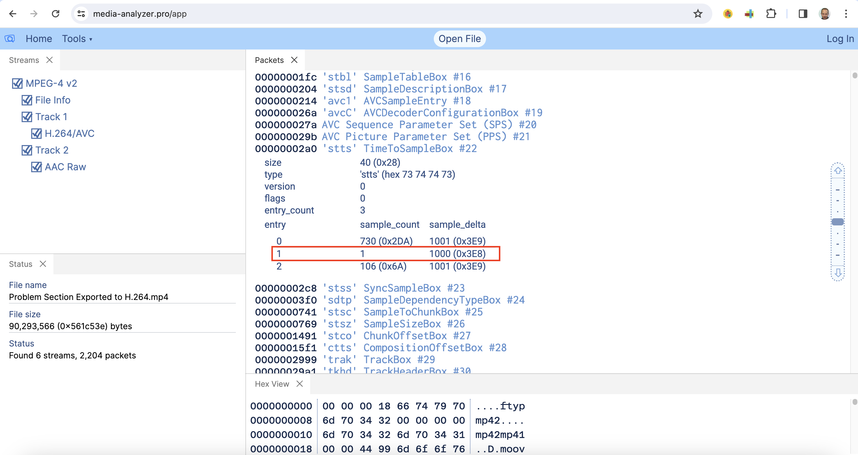 Used your Problem Section Exported to H.264.mp4.