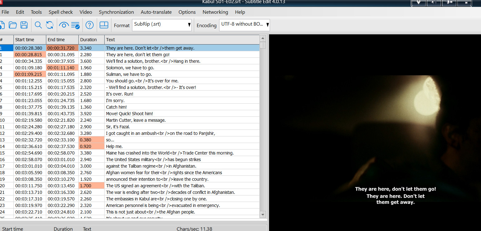 Whisper has translated these foreign dialogs, but we want those that are already in "Kabul S01-E01-F.srt".