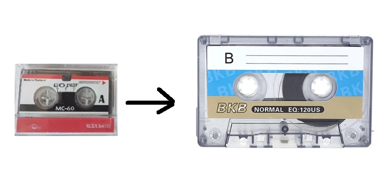 Would it be possible to change the case of a microcassette to place the roll on a normal cassette case and play it?