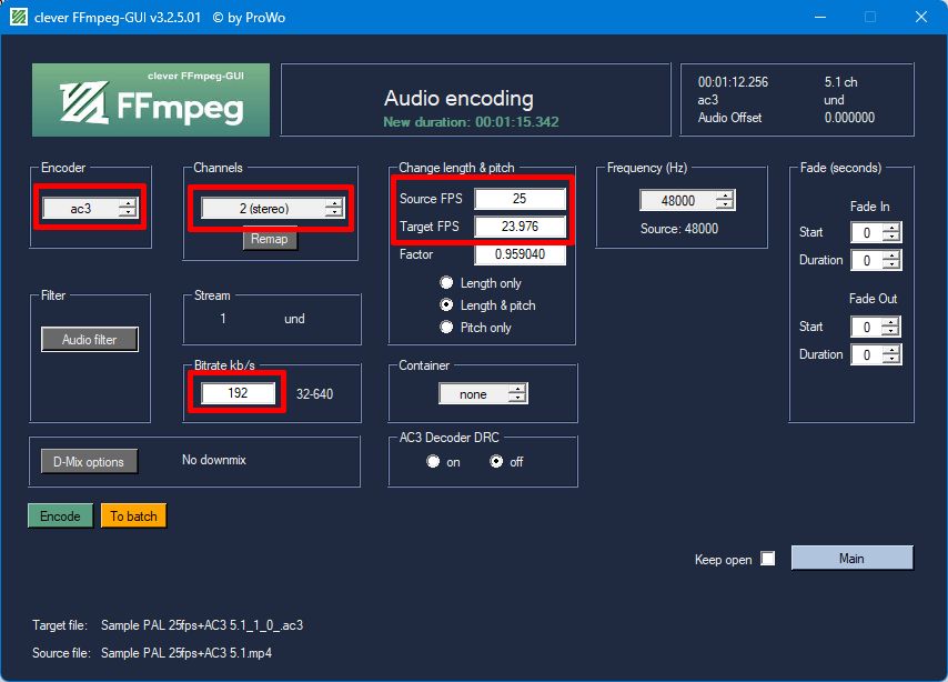 The new generated ac3 audio should match the encoded 23.976 fps lagarith video.