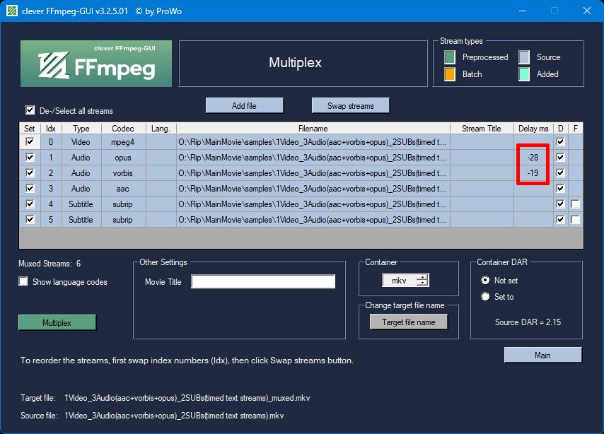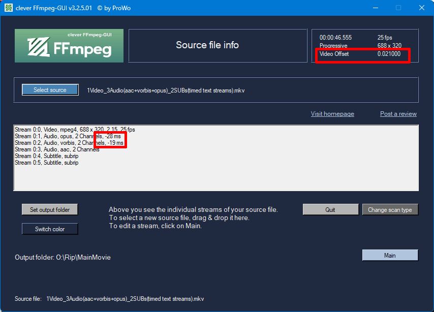 In the start window from clever Ffmpeg-GUI, after loading this video, is there shown any audio delay?Last edited by ProWo; 26th Mar 2024 at 02:55. Reason: typo