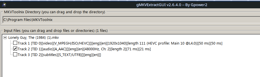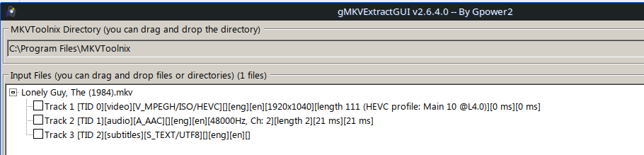 I'm trying to extract files out of a MKV container and not having much luck. I have previously used gMKVExtractGUI with no issues, but now I've suddenly got two files it just won't work well with.