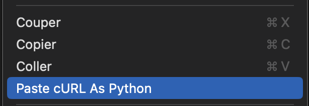 The I paste in vscode so I get the headers and everything (using vscode extension from https://curlconverter.com/):