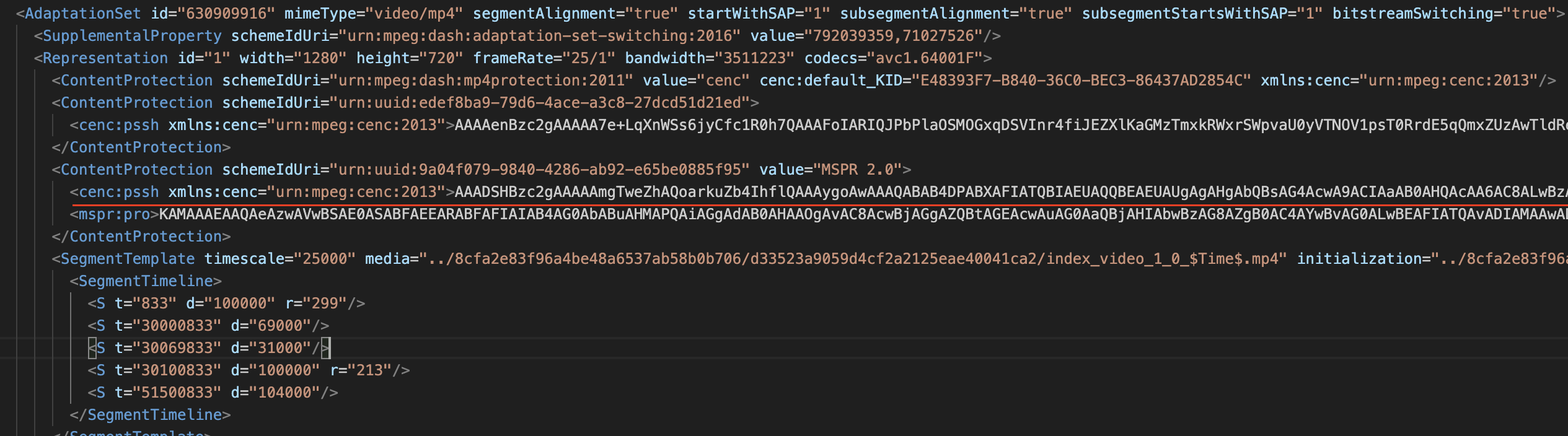 In there, I see a PSSH that starts with 'AAA' instead of what I usually see ('AAAA').Code:https://video.dpgmedia.net/out/v1/24feb673b0094cc4b52f5198611d4bff/eb76c933215848938246f10a6161dc4b/75aa63df75e944e0aeafbdbcbf096fc1/index.mpd?aws.manifestfilter=subtitle_language%3Azzz%3Btrickplay_type%3Aiframe