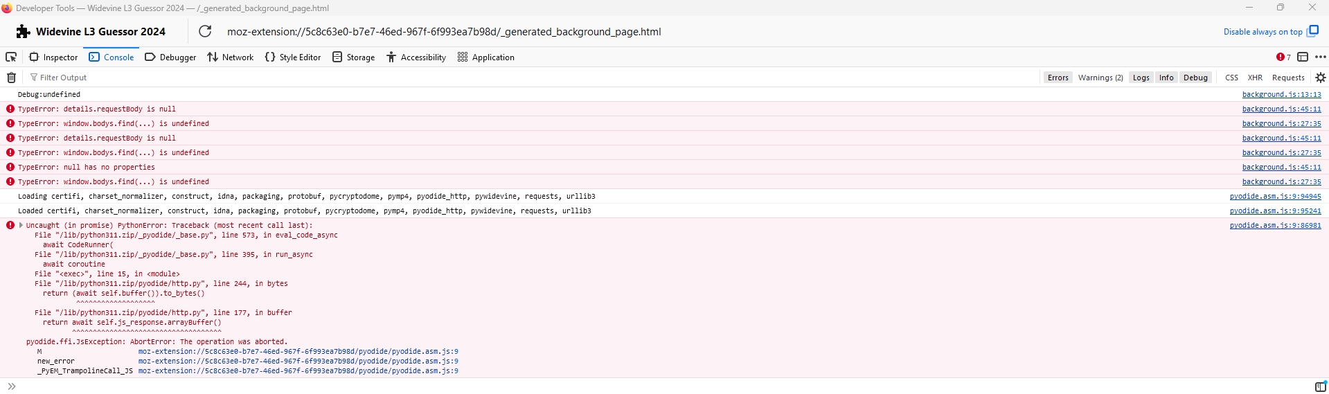 In Chromium, an error of type OSError is returned when a file is not found, but in FF, an untyped error is returned, so error handling is not done correctly and retries are not made when using CDM other than device.wvd in Firefox was.Don't be stupid.Use your brain and Google.