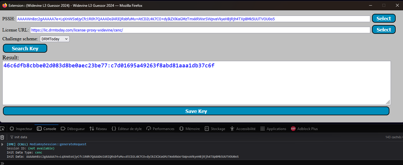 Code:function GetPssh(buffer) { var binary = ''; var bytes = new Uint8Array( buffer ); var len = bytes.byteLength; for (var i = 0; i < len; i++) { binary += String.fromCharCode( bytes[ i ] );} return window.btoa( binary ); } ...etc document.dispatchEvent(new CustomEvent('pssh', {detail: GetPssh(initData)})); -