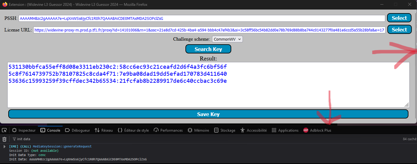 I tried to modify the inject.js code to detect pssh code in simplier mode. with M6Replay it works very well but I can't do it with MYTF1 (see photo)