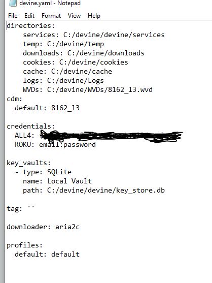 Devine.yaml needs to be in appdata devine in my case i need to edit it with Notepad ++