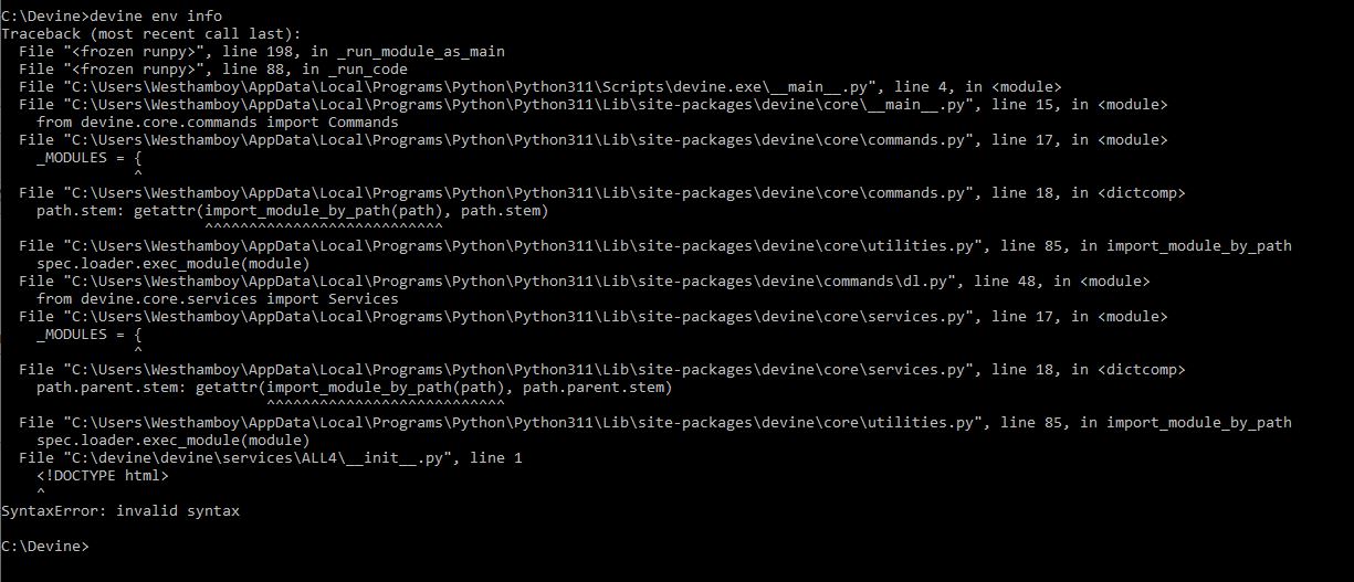 BTW, it's not a bad idea to be running devine in a virtual environment. It looks like you installed devine into your global python library. -