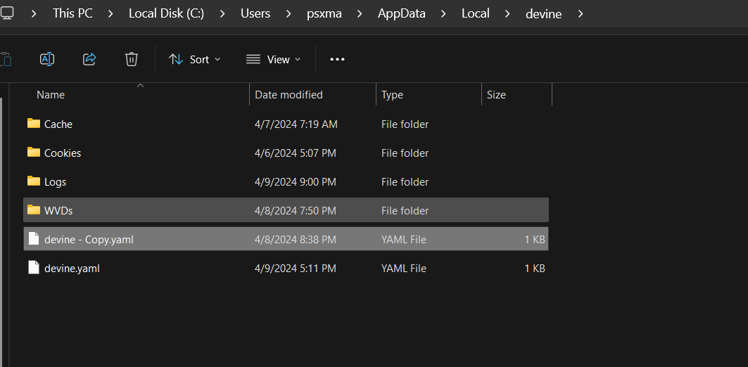 also tried having devine.yaml in C:\Users\xxxx\AppData\Local\devine folder but this makes no difference.