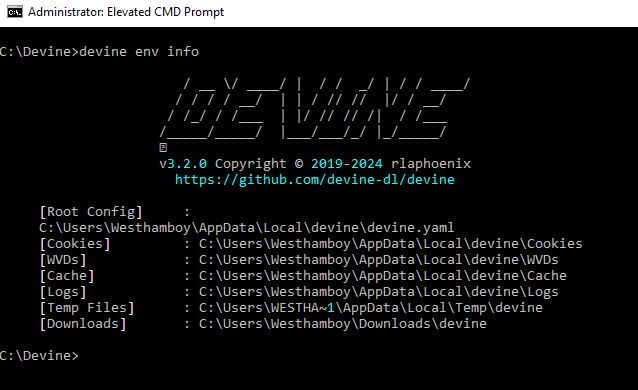 upon running an elevated cmd prompt: and using devine env info i get the following: