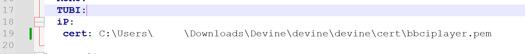 Code:services: iP: cert: C:\Users\XXXXXX\devine\cert\bbciplayer.pem -