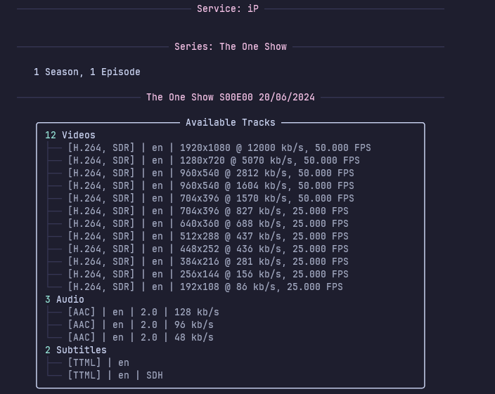 Ace work on all this. Just chipping in on the DSCP single episode thing, I'd actually use it for several "on demand" / "replays" for some sporting events. When using the TV app, finding them and resuming is such a pain as they are so menu embedded etc. Whizzing them through devine dl and into personal server would be much easier to track where we're at with the events.