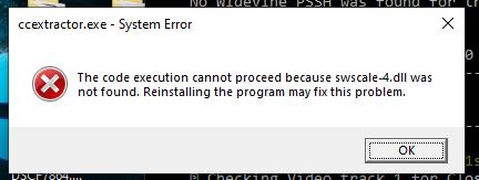 can confirm devine cannot see the natural installation folder for ccextractor. 2 files it cannot see, 1 swscale-4.dll and swresample-2.dll both of which are available in C:\Program Files (x86)\CCExtractor
