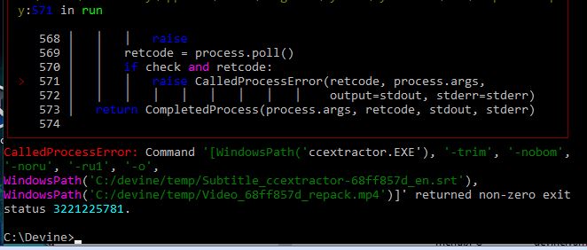 As for your error, ccextractor is used whenever there are no subtitles added/available to check track for closed captions. And in this case, there's something wrong with your installation of it. -