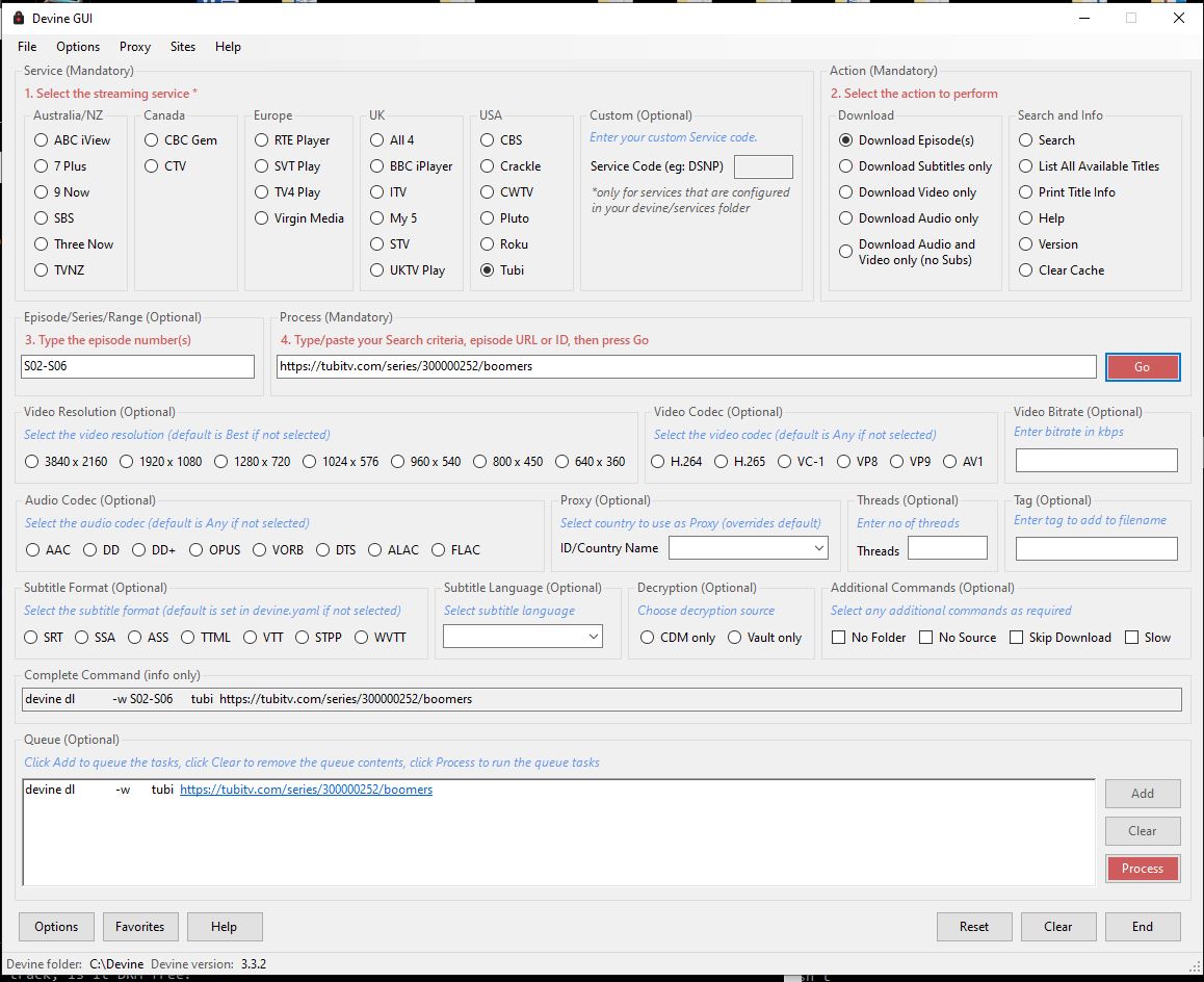 Could a kind soul please tell me what the call would be to download a series from tu.bi.... I know that devine dl tubi "address" is for a single episode.... but i'm unaware of what a series call would be. (I did try billys gui, but it fails on everything by putting -w instead of dl in the call line.) (tried everything on billys gui, but that -w never goes away).