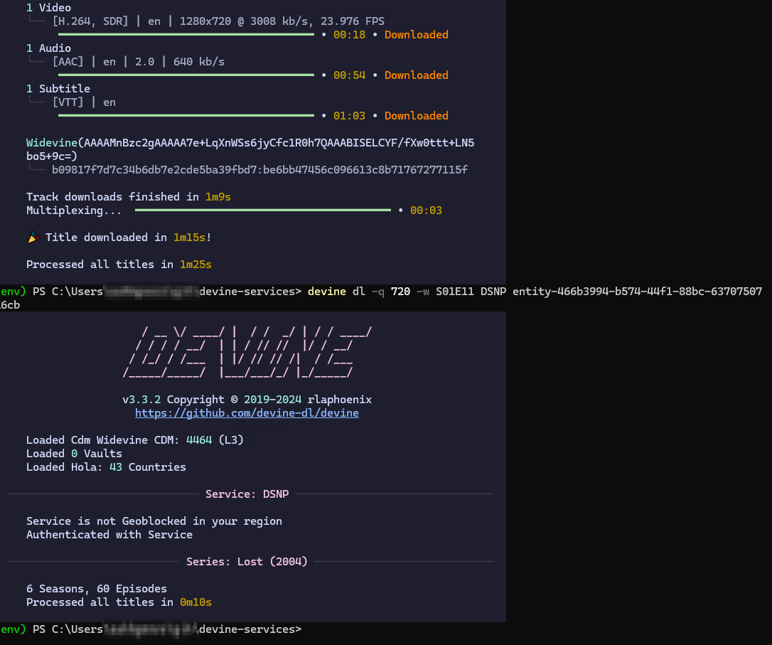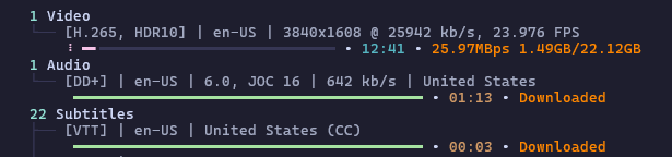 As a side note, I've managed to add N_m3u8DL-RE as an option in my own version of Devine, which works really well so far. Not only is it significantly more stable and faster in most cases..