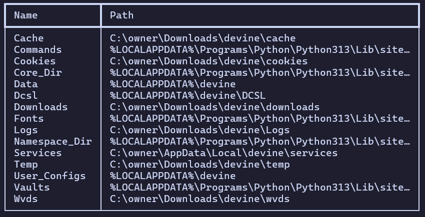 1. In a command prompt, type DEVINE ENV INFO and it will tell you where it is looking for your services and where your devine.yaml file is.