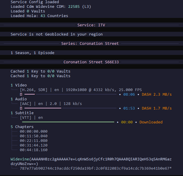 So far I have justCode:freevine.py get --proxy UK --no-cache --episode URL --save-name FILENAME.mp4