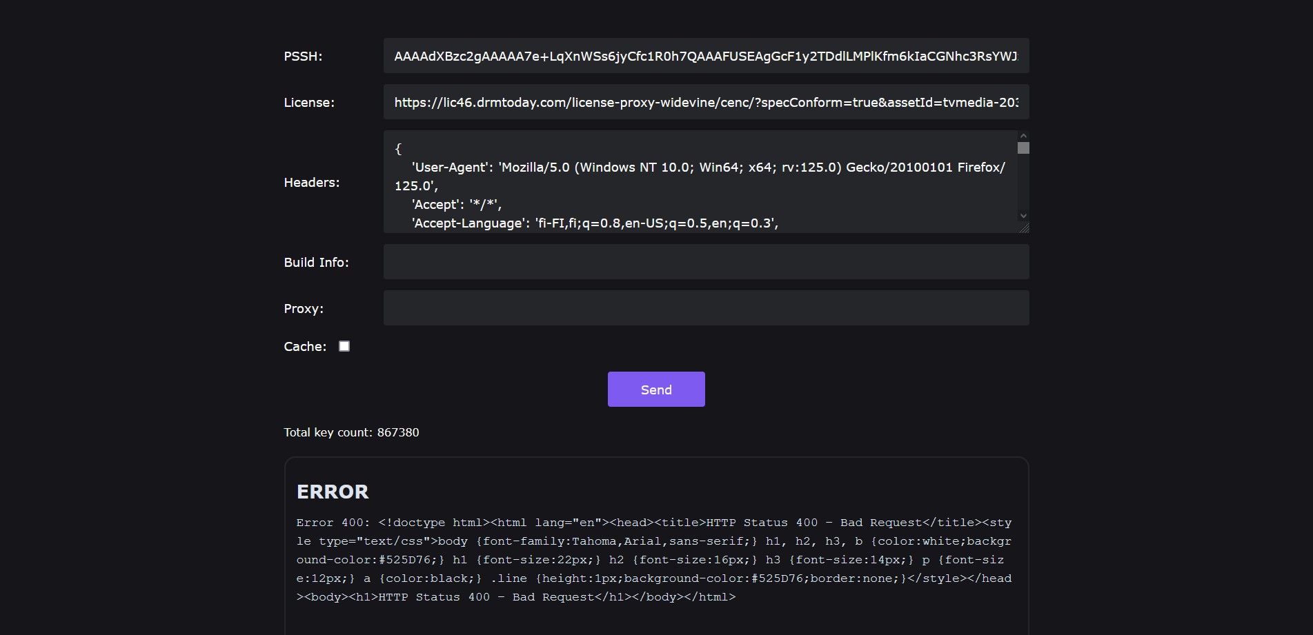 What I don't understand is what to put in headers field on CDRM-Project. No matter what I do, I get this weird error 400, see the picture. Image
