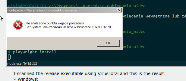 PS. I did all the poiints till "playwright install" that is not supported (yeah, win7 again.. I suppose..) as well - screenshot attached.