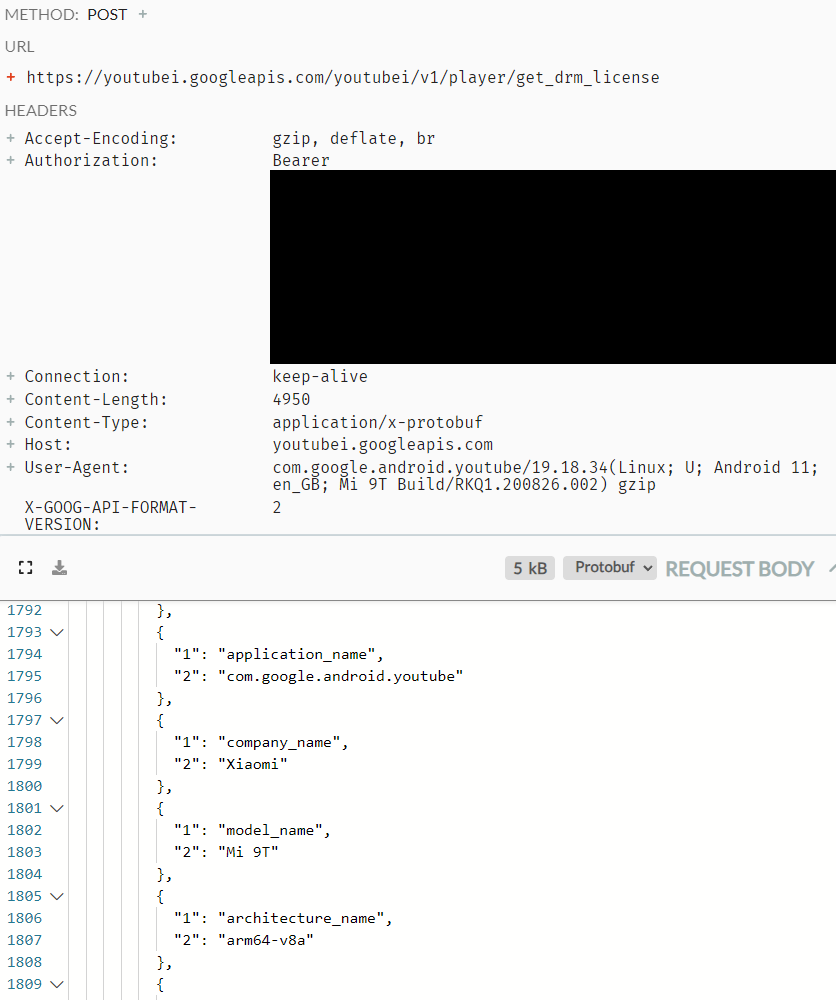 The headers that are not shown in the screenshot are just hash data and the whole request body is Protobuf encoded (with a sample not revealing too much cdm info below).Last edited by larley; 29th May 2024 at 04:45.