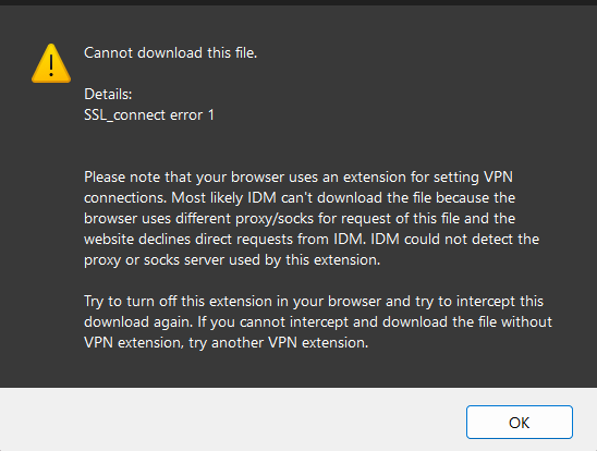 Whenever i try to download a File using IDM form downloadly.net.ir it says SSL error Connect 1 .... for some files while the others get downloaded just fine ... why does this happen and how can i fix this issue for me ....