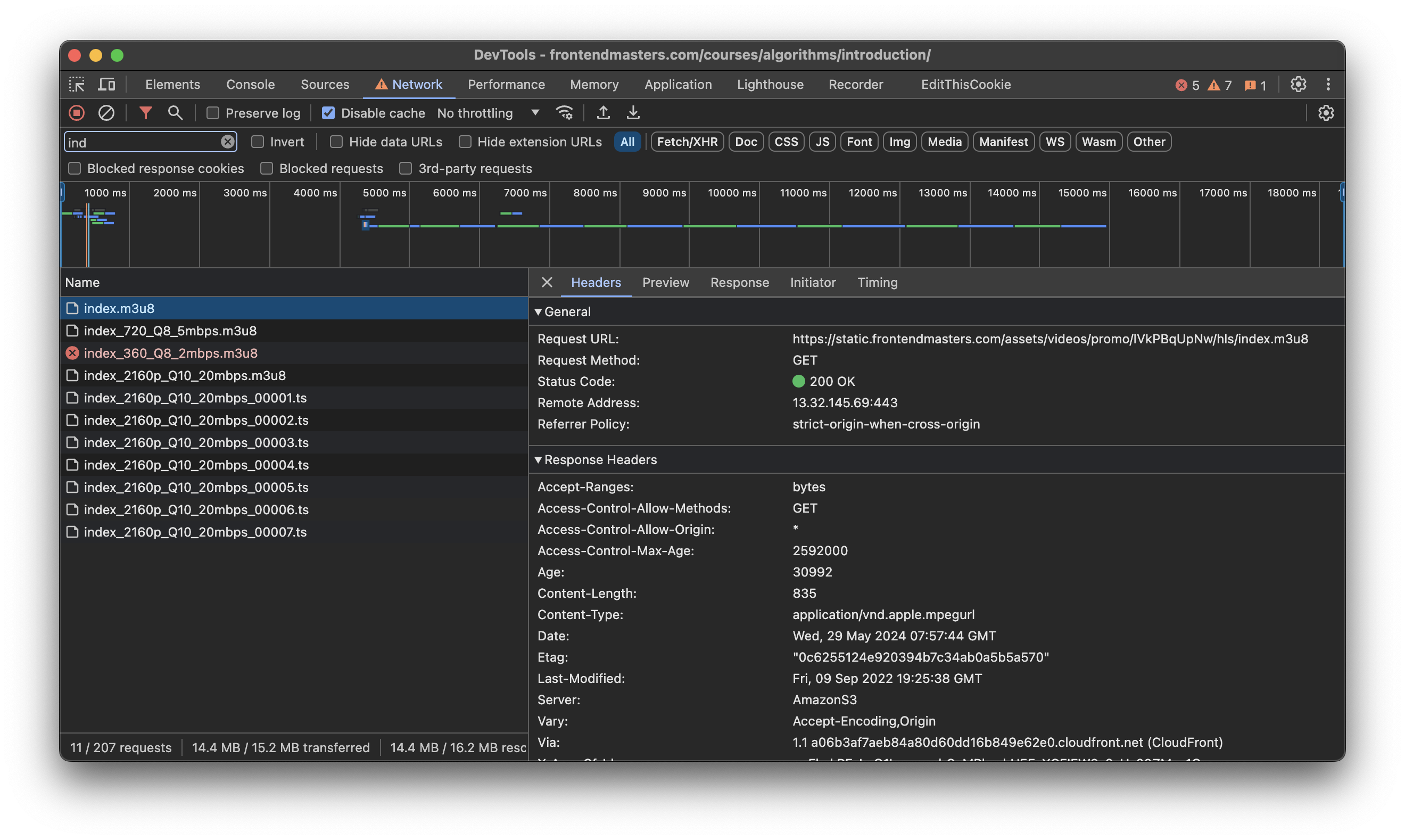 are you trying on preview videos? as i see only preview videos have those https://static.frontendmasters.com, but if you login into the course, they have link like this https://stream.frontendmasters.com