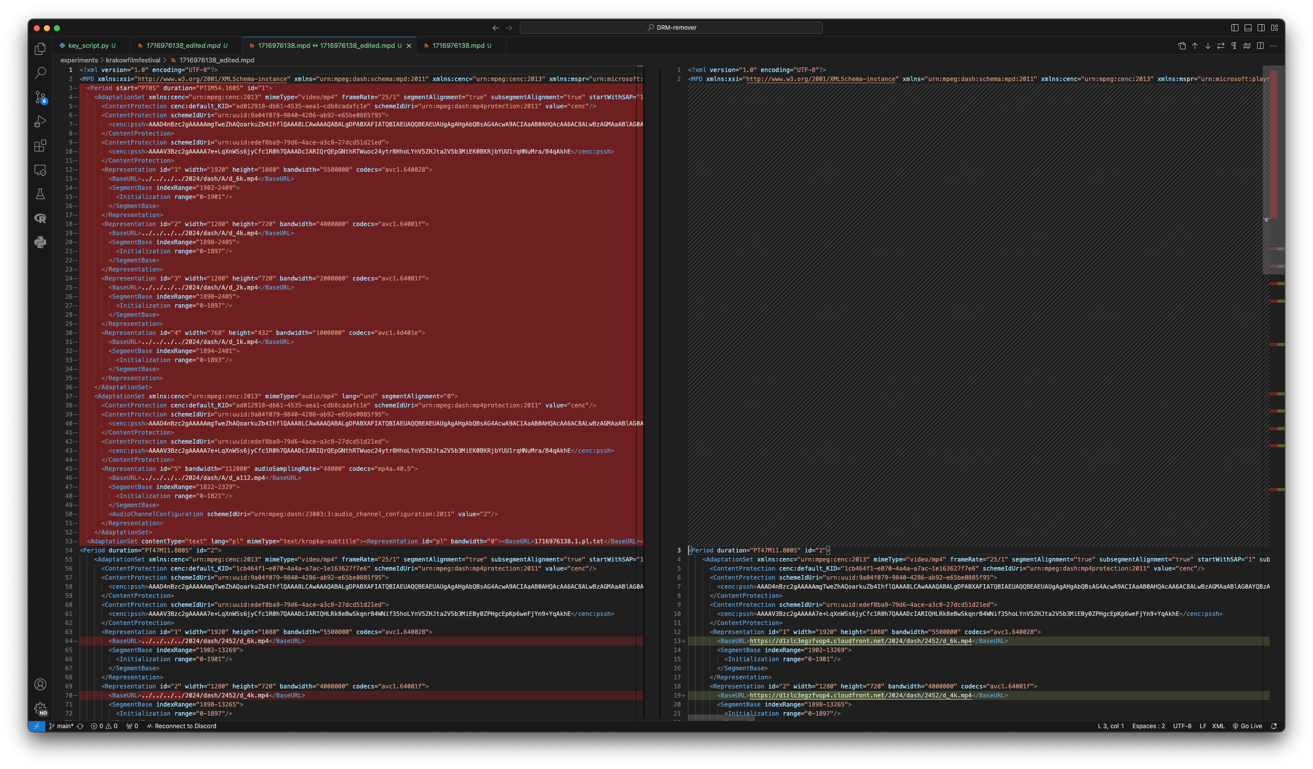 getting "unable to parse license - check protobufs" in l3.pyCode:headers = { 'accept': '*/*', 'accept-language': 'pl-PL,pl;q=0.9,en-US;q=0.8,en;q=0.7', 'customdata': 'PD94bWwgdmVyc2lvbj0iMS4wIj8+CjxLZXlPU0F1dGhlbnRpY2F0aW9uWE1MPjxEYXRhPjxGYWlyUGxheVBvbGljeSBwZXJzaXN0ZW50PSJ0cnVlIj48UGVyc2lzdGVuY2VTZWNvbmRzPjU1NDg5PC9QZXJzaXN0ZW5jZVNlY29uZHM+PC9GYWlyUGxheVBvbGljeT48V2lkZXZpbmVQb2xpY3kgZmxfQ2FuUGVyc2lzdD0idHJ1ZSIgZmxfQ2FuUGxheT0idHJ1ZSI+PExpY2Vuc2VEdXJhdGlvbj41NTQ4OTwvTGljZW5zZUR1cmF0aW9uPjwvV2lkZXZpbmVQb2xpY3k+PFdpZGV2aW5lQ29udGVudEtleVNwZWMgVHJhY2tUeXBlPSJIRCI+PFNlY3VyaXR5TGV2ZWw+MTwvU2VjdXJpdHlMZXZlbD48L1dpZGV2aW5lQ29udGVudEtleVNwZWM+PExpY2Vuc2UgdHlwZT0ic2ltcGxlIj48UG9saWN5PjxJZD5kOGNiMzM0My1mM2RmLWJkZGYtMWYyMy01Yjg3MDAwNjAwOTg8L0lkPjwvUG9saWN5PjwvTGljZW5zZT48UG9saWN5IGlkPSJkOGNiMzM0My1mM2RmLWJkZGYtMWYyMy01Yjg3MDAwNjAwOTgiIHBlcnNpc3RlbnQ9InRydWUiPjxFeHBpcmF0aW9uRGF0ZT4yMDI0LTA2LTAxIDA2OjI2OjEzLjgwMTwvRXhwaXJhdGlvbkRhdGU+PC9Qb2xpY3k+PEdlb0ZlbmNlPjxDb3VudHJ5PjxBbGxvdz5QTDwvQWxsb3c+PC9Db3VudHJ5PjwvR2VvRmVuY2U+PEdlbmVyYXRpb25UaW1lPjIwMjQtMDUtMzEgMTU6MDE6MjQuODAxPC9HZW5lcmF0aW9uVGltZT48RXhwaXJhdGlvblRpbWU+MjAyNC0wNS0zMSAxNTowMzoyNC44MDE8L0V4cGlyYXRpb25UaW1lPjxVbmlxdWVJZD5kYjFiYzRlYTc2NTdjZjljZGE2OTFkN2E2YWYzODY3OTwvVW5pcXVlSWQ+PFJTQVB1YktleUlkPjVmNDRiM2UxYzFkNDAwZTYxYjBmZDlhOTYzMzk0ZjFjPC9SU0FQdWJLZXlJZD48L0RhdGE+PFNpZ25hdHVyZT5tNzk0aU9SUVJjbm9nOXEwWjdiWXpHanY0bzU0d2M0eTBEc21ZZ1JmUVpTU2hnQWVtTXVxbEdSaVVIMUdXSzNFN2pUT2hORi9rOUpCSWZiUWhTREFYQkZITUlDQ0FyZldxS0NLZXBvVEd3MXB4UFFuakNrWmU5UXN6QllndTNpdFhsb0xhZjdsVnNKRUdMNmRZU0hsZURuOTVlaWhkcjM5K1RLalhMVVZuZTJjYVVXNnVHYlZOS3ZBSjVxR2FmM092QmNKcTBuL3ZLSWxWTGhWdTZBT2JqU0pLeEFrSTlIVDdQZ3RwVndtSUhVRkZxWEdKaHIxcGxmcW0rV2dKeE5zZS9xWFRxdEgzdEt1dCtNSjc0WXZqN1lnN3Z4cEV5UWgwUitXR20xVWQwT2UyQSsyMENxQ29sQ08wREJLaDFTRVF3N1VVb3FCSXBENkwrbXM0NkJyNUE9PTwvU2lnbmF0dXJlPjwvS2V5T1NBdXRoZW50aWNhdGlvblhNTD4K', 'origin': 'https://www.krakowfilmfestival.pl', 'priority': 'u=1, i', 'referer': 'https://www.krakowfilmfestival.pl/vod/ogladaj/1365/', 'sec-ch-ua': '"Google Chrome";v="125", "Chromium";v="125", "Not.A/Brand";v="24"', 'sec-ch-ua-mobile': '?0', 'sec-ch-ua-platform': '"Windows"', 'sec-fetch-dest': 'empty', 'sec-fetch-mode': 'cors', 'sec-fetch-site': 'cross-site', 'user-agent': 'Mozilla/5.0 (Windows NT 10.0; Win64; x64) AppleWebKit/537.36 (KHTML, like Gecko) Chrome/125.0.0.0 Safari/537.36', 'content-type': 'application/x-www-form-urlencoded', }