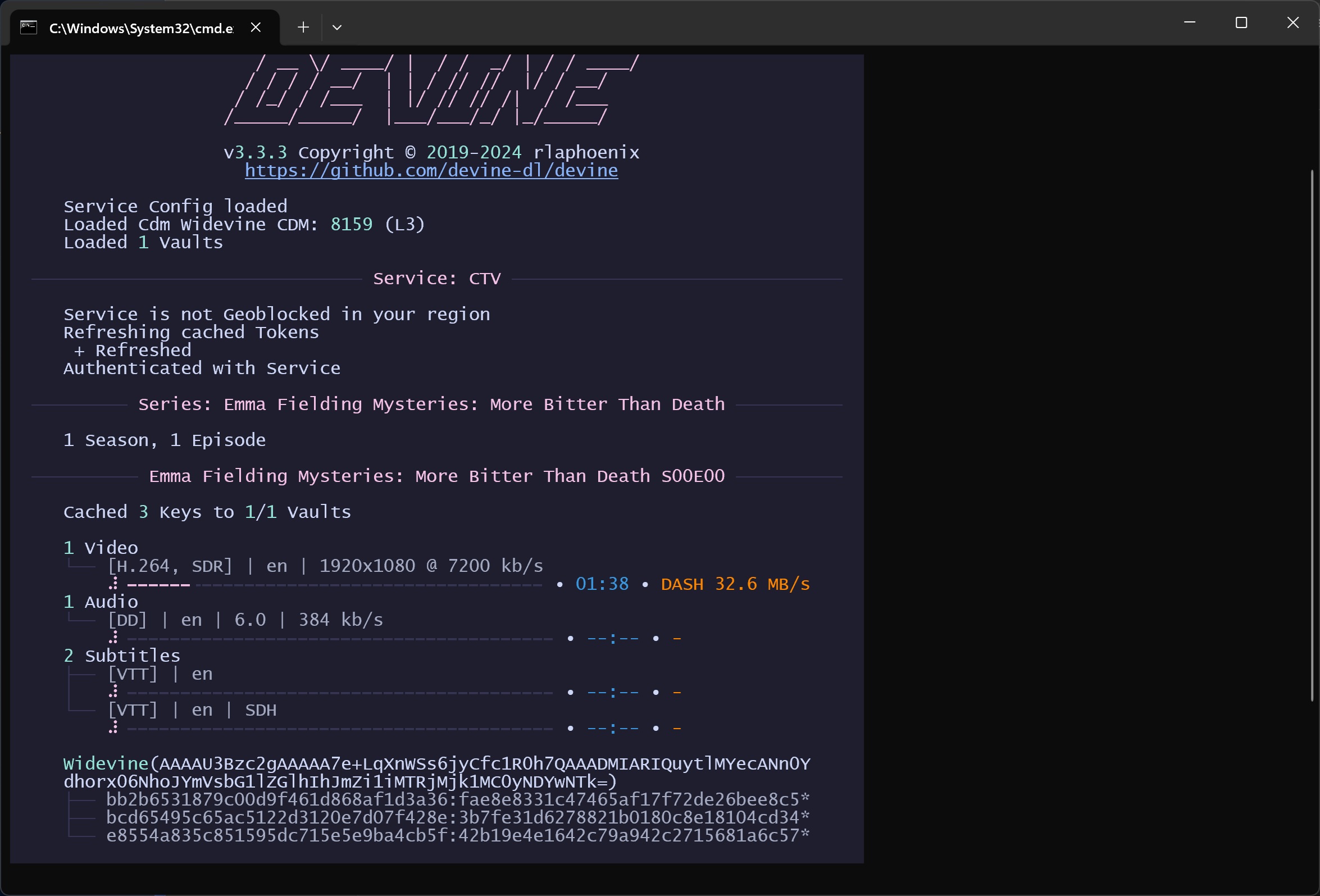 Rename to video both files. Then use mp4decrypt on them with the keys you received in the first post.Code:yt-dlp "https://www.ctv.ca/movies/emma-fielding-mysteries-more-bitter-than-death/emma-fielding-mysteries-more-bitter-than-death" --allow-u -o "content"