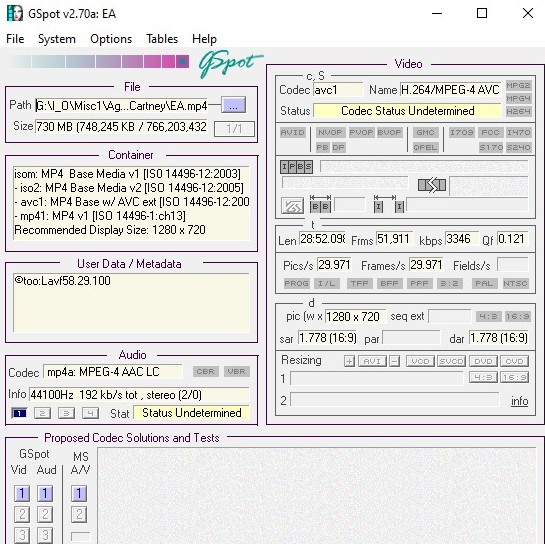 I've been using GSpot for yrs and have Version v2.70a. I had a question about the audio codec message I get.