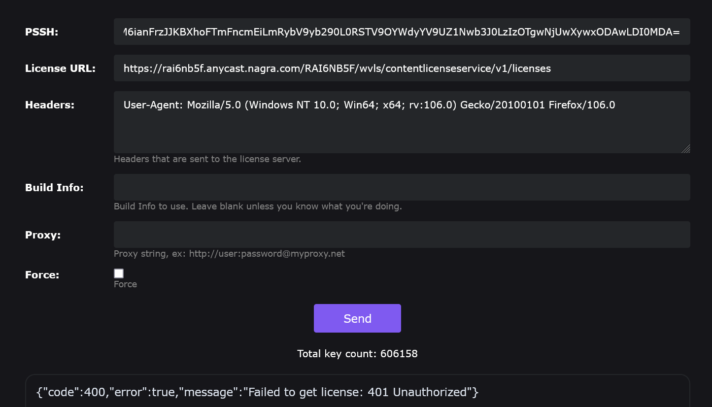 1. This video has protected by DRM, i get KeysDB but I get that "{"code":400,"error":true,"message":"Failed to get license: 401 Unauthorized"}" error. How to fix it to download video? Thanks! Link to this: https://www.raiplay.it/video/2024/08/Tg-Sport-ore-0345-del-15082024-b4d02ec0-20e6-4420...149304d81.html Here's a screenshot: