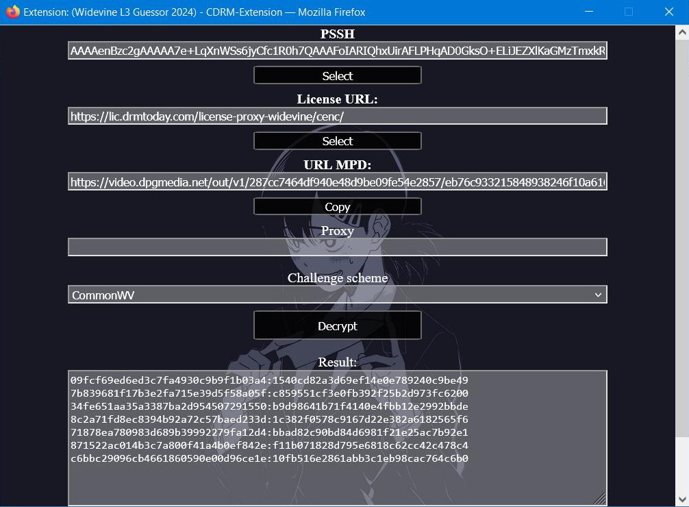 To get the key pairs, Widevine L3 Guessor 2024 will help here. While streaming the video the extension will provide key pairs:
