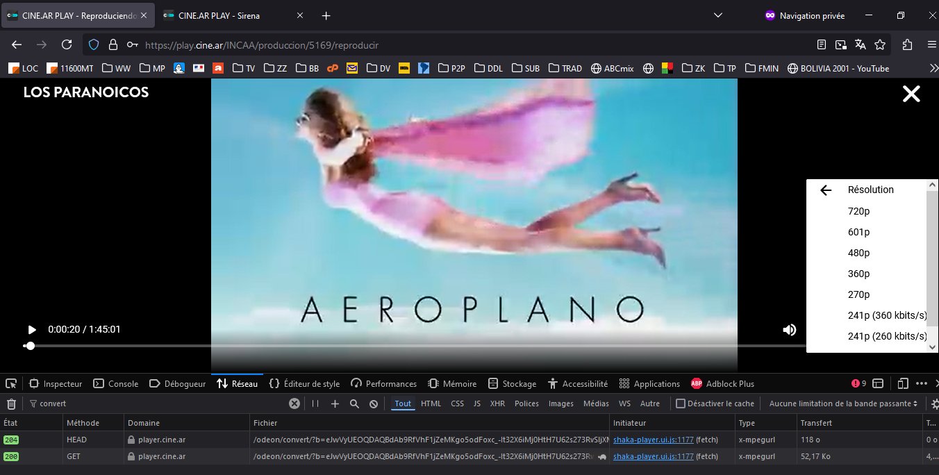 With some help from here, we got an easy way to download from cine.ar. And with this we get the supposed best resolution 720p.