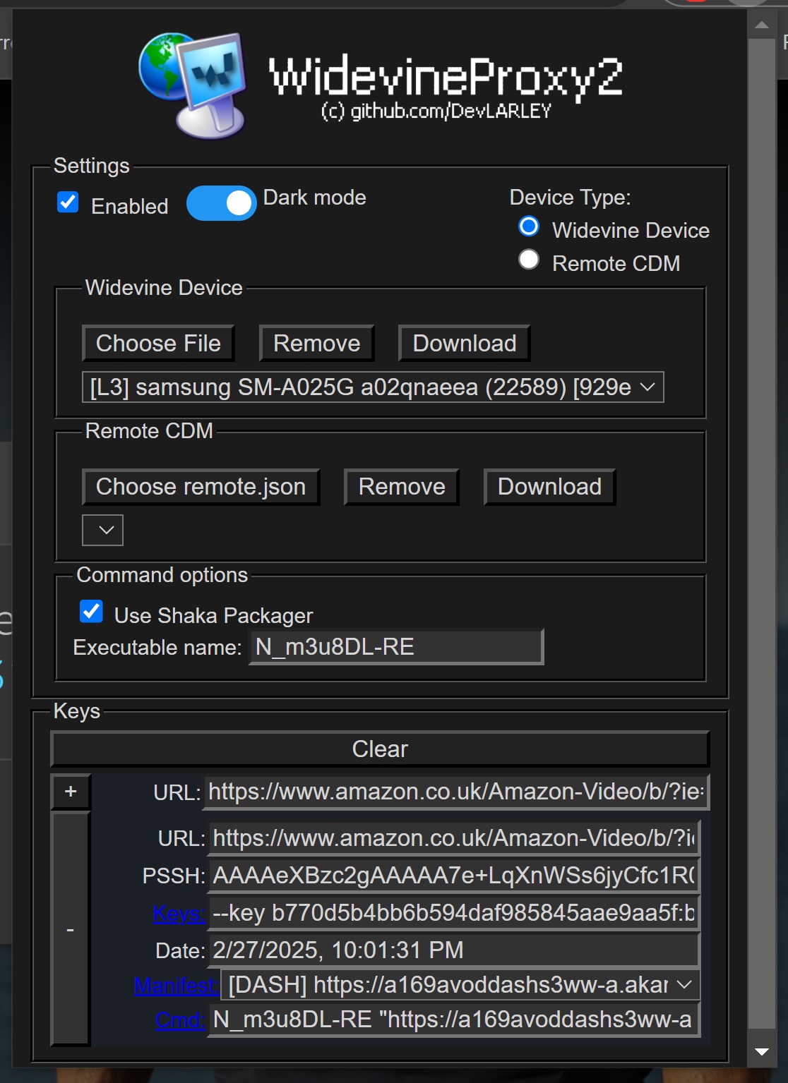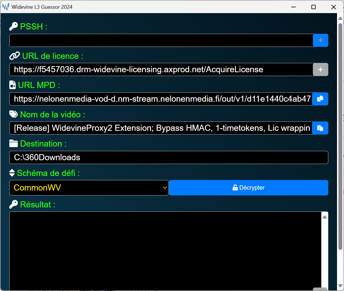 Before that I've used WidevineFetch for key searching + mpd link. This one is ALL-IN-ONE!