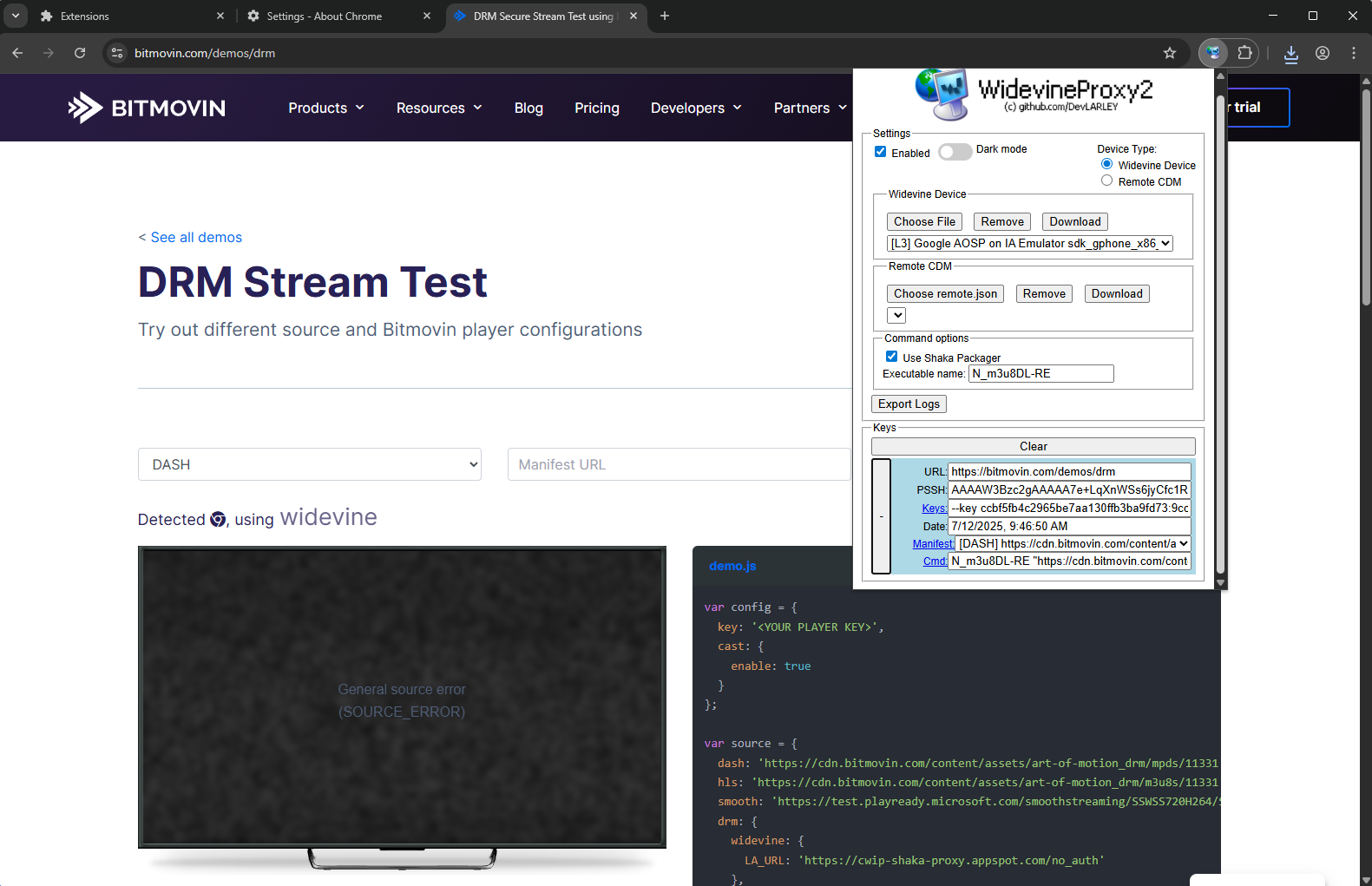 However, I believe WidevineProxy2 is currently less relevant, and is more of a fallback legacy solution, due to Vineless existing, supporting PlayReady and not requiring a CDM plugin. Vineless is updated almost daily as I keep reporting bugs, though if using Firefox, you will need to use a version of it that allows running unsigned extensions as signed ones are only created on release versions. -