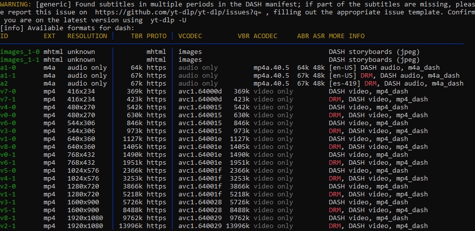 Digging deeper by doing: "yt-dlp ... -F --allow-u", this is what it turned up: