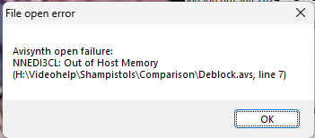NNEDI3CL.DLL is the OpenCL version of NNedi3. Uses the GPU. Could it be referring to GPU vram being exhausted?