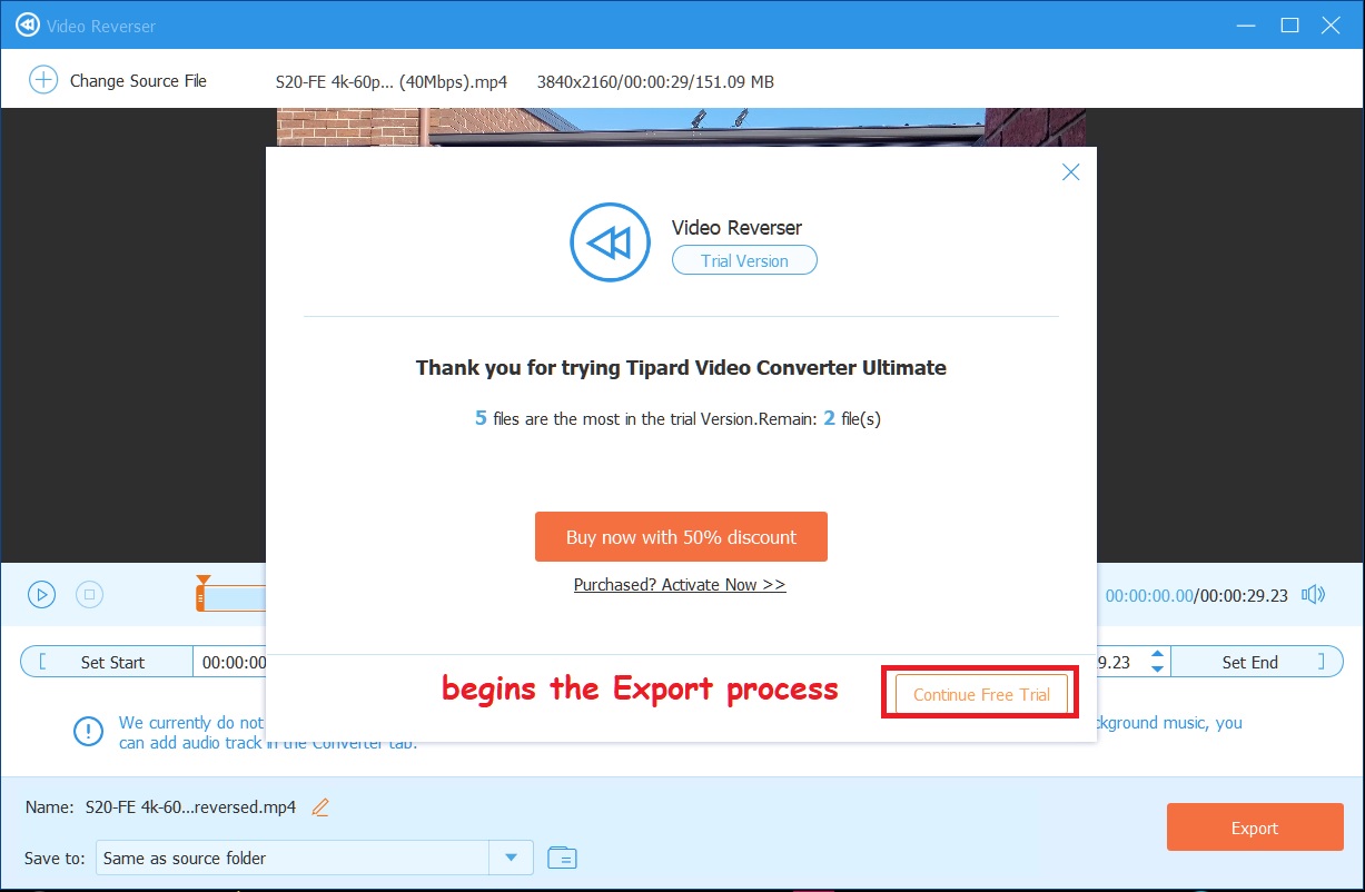 Continue to Export.
