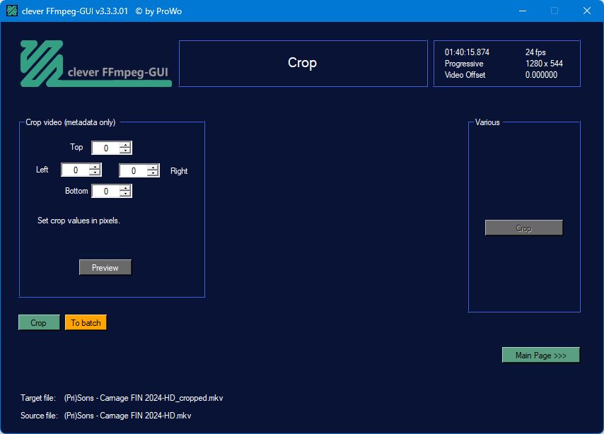 Insert the crop values, check with the preview button, and if the result is ok then click crop.