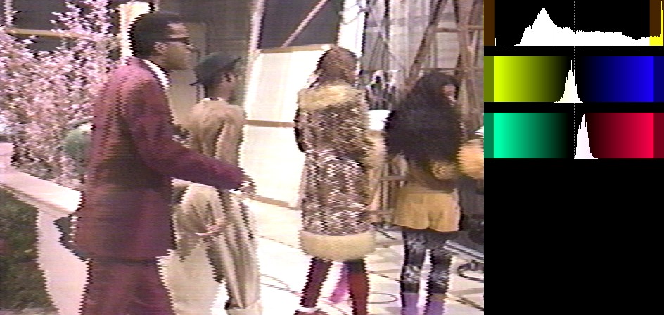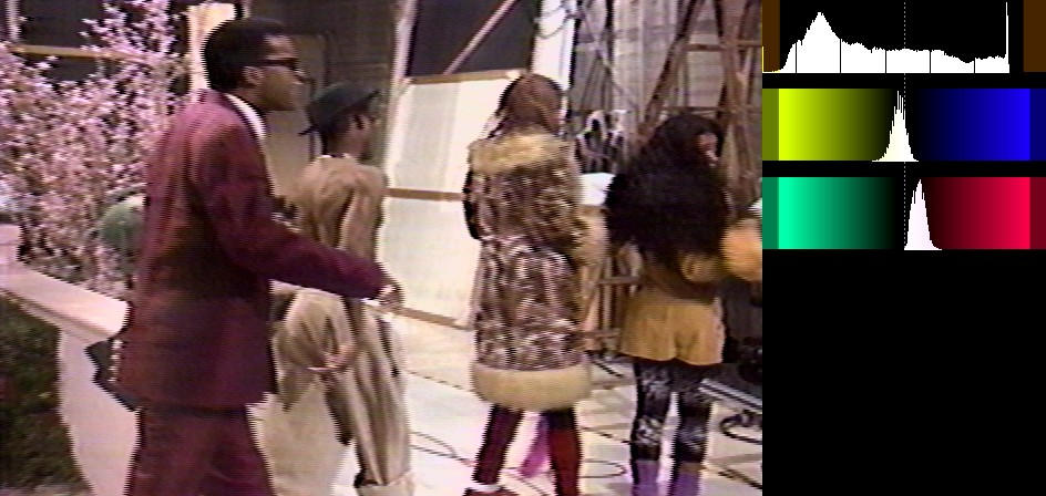 Regarding gaps in the histogram: small "errors" like that are of almost no consequence with VHS noise caps. The noise in the VHS cap far overwhelms the quantization gaps in the histogram. Here's an example of an extreme case, using one field of the same frame as above: