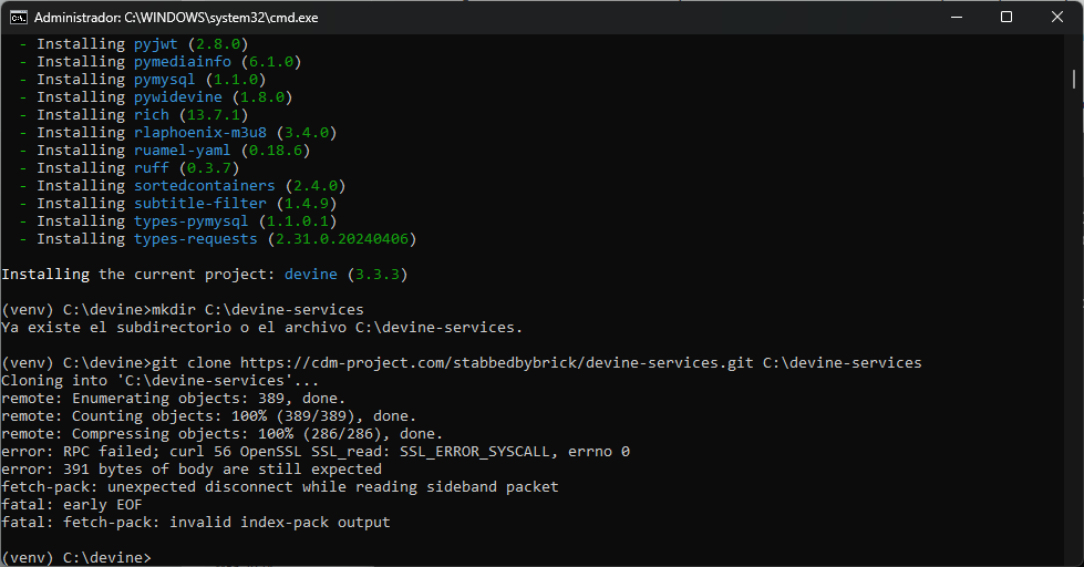 Code:mkdir C:\devine-services git clone https://cdm-project.com/stabbedbybrick/devine-services.git C:\devine-services