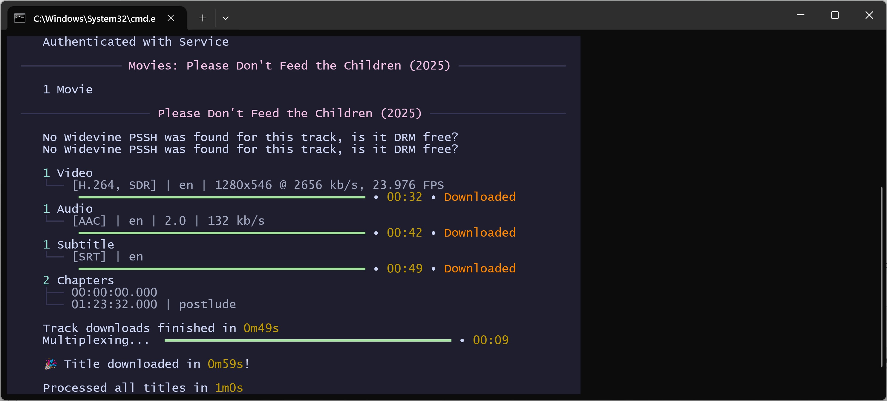 Thank you for your response. It is nice to see it is working well for you. Usually I can get Tubi TV videos with WidevineProxy 2 without subtitles or chapters. I hope that keeps working out.